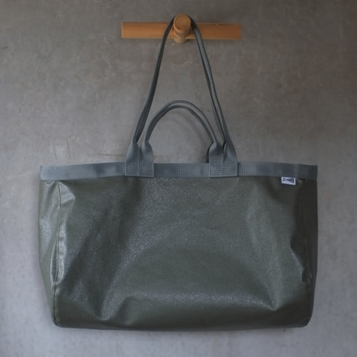 KATE : 正面幅34cm。頑張っている女性たちのために、フェミニンなシルエットでありながら仕事もバリバリこなせるサイズのビニールトート "ケイト" を作りました。