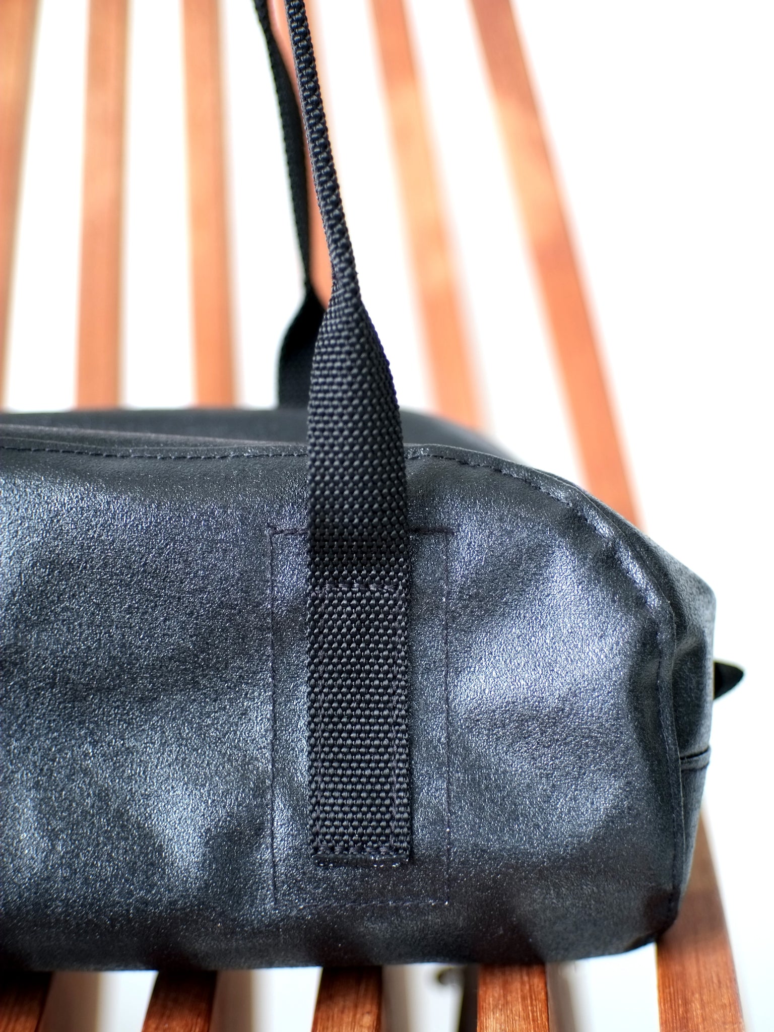 私達はこれを使ってバッグを制作しました。ただ、縫い目からは多少の水分の進入はありますので「ちょっと防水」としています。