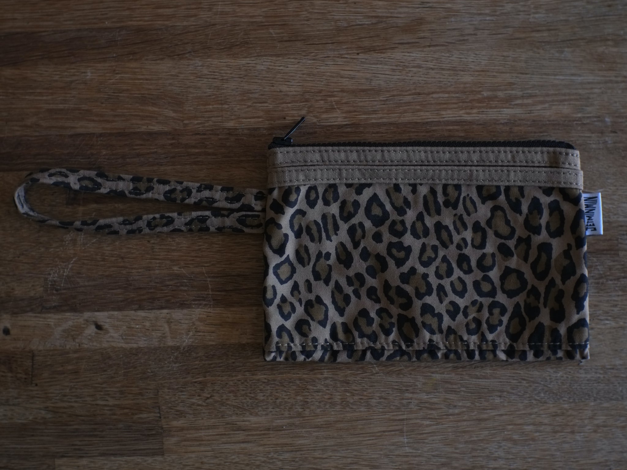 これは小さめのサイフとスマホがちょうど入るサイズの、ファスナー巾17.5cm(6.9")。
