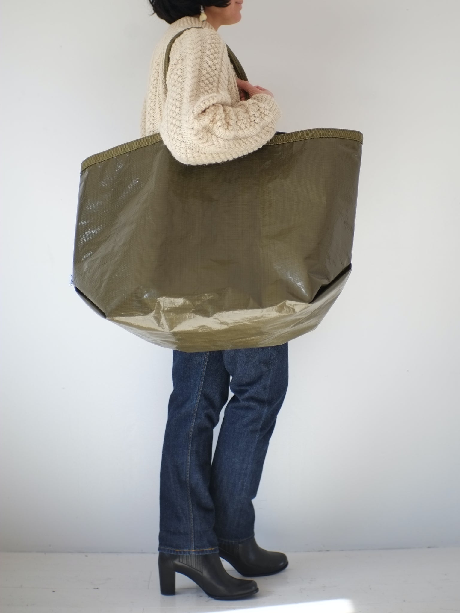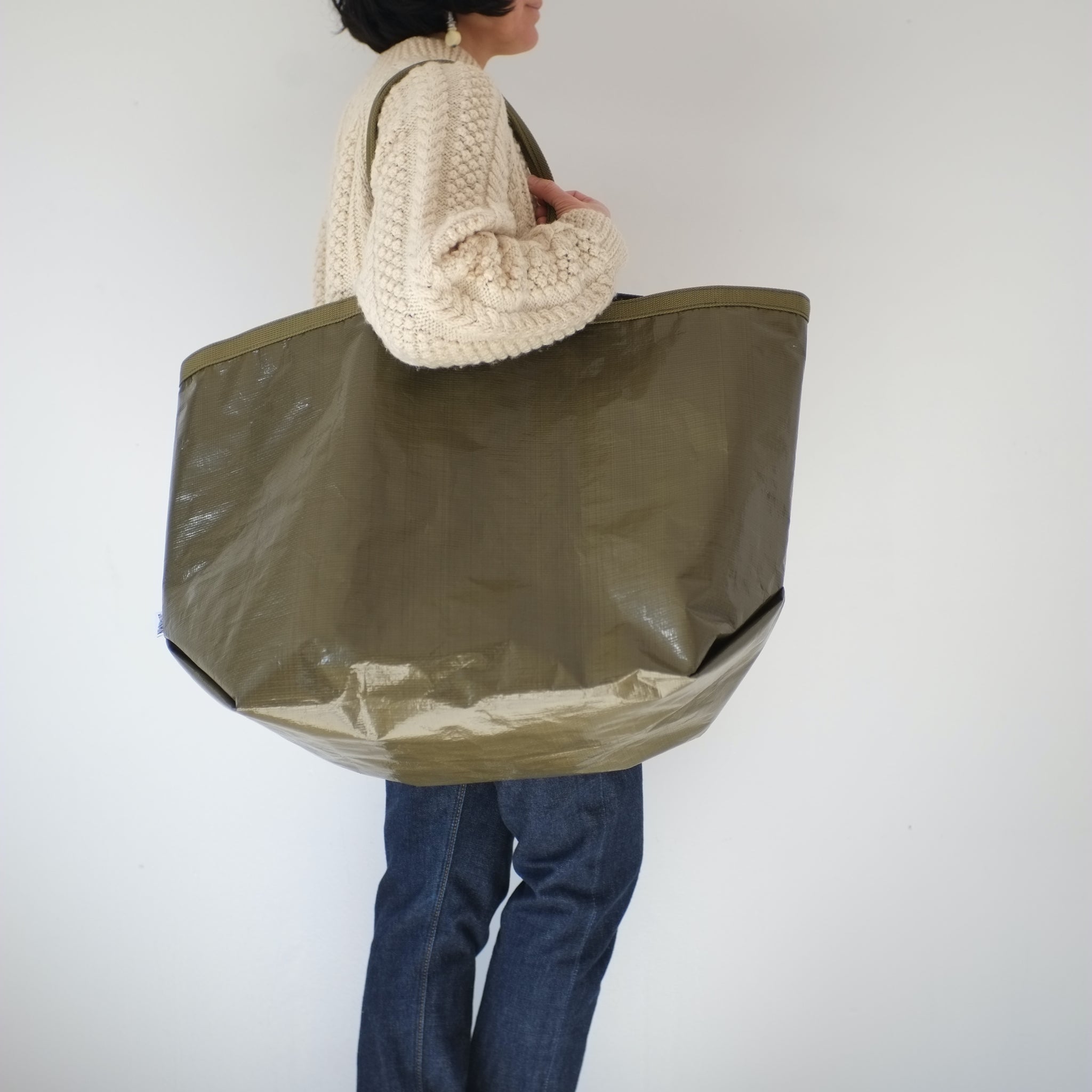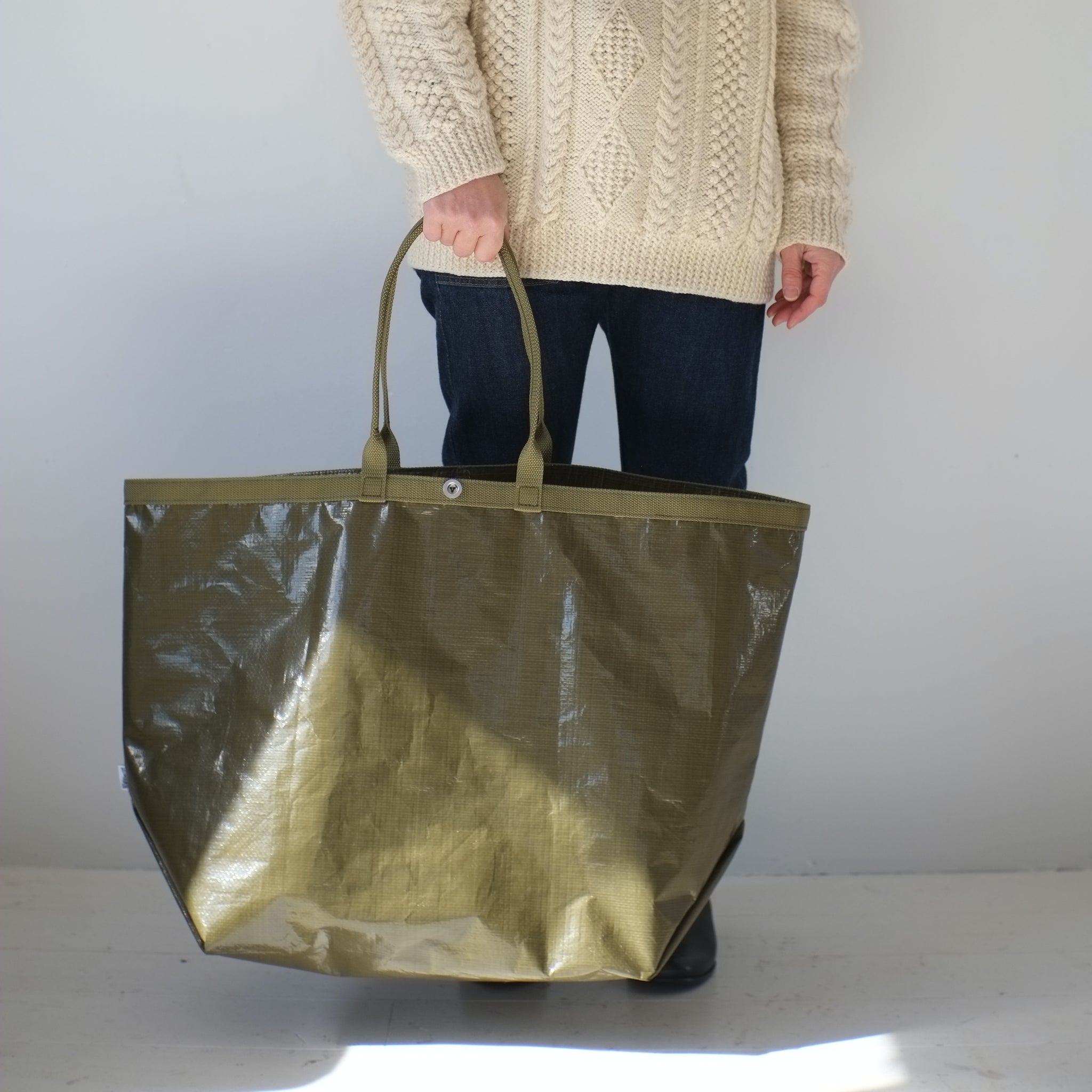 キャンプやビーチやプールやアウトドアのイベントなど、たくさん荷物が入って、1個持っていると何かと便利なちょっと防水の特大トートバッグ。