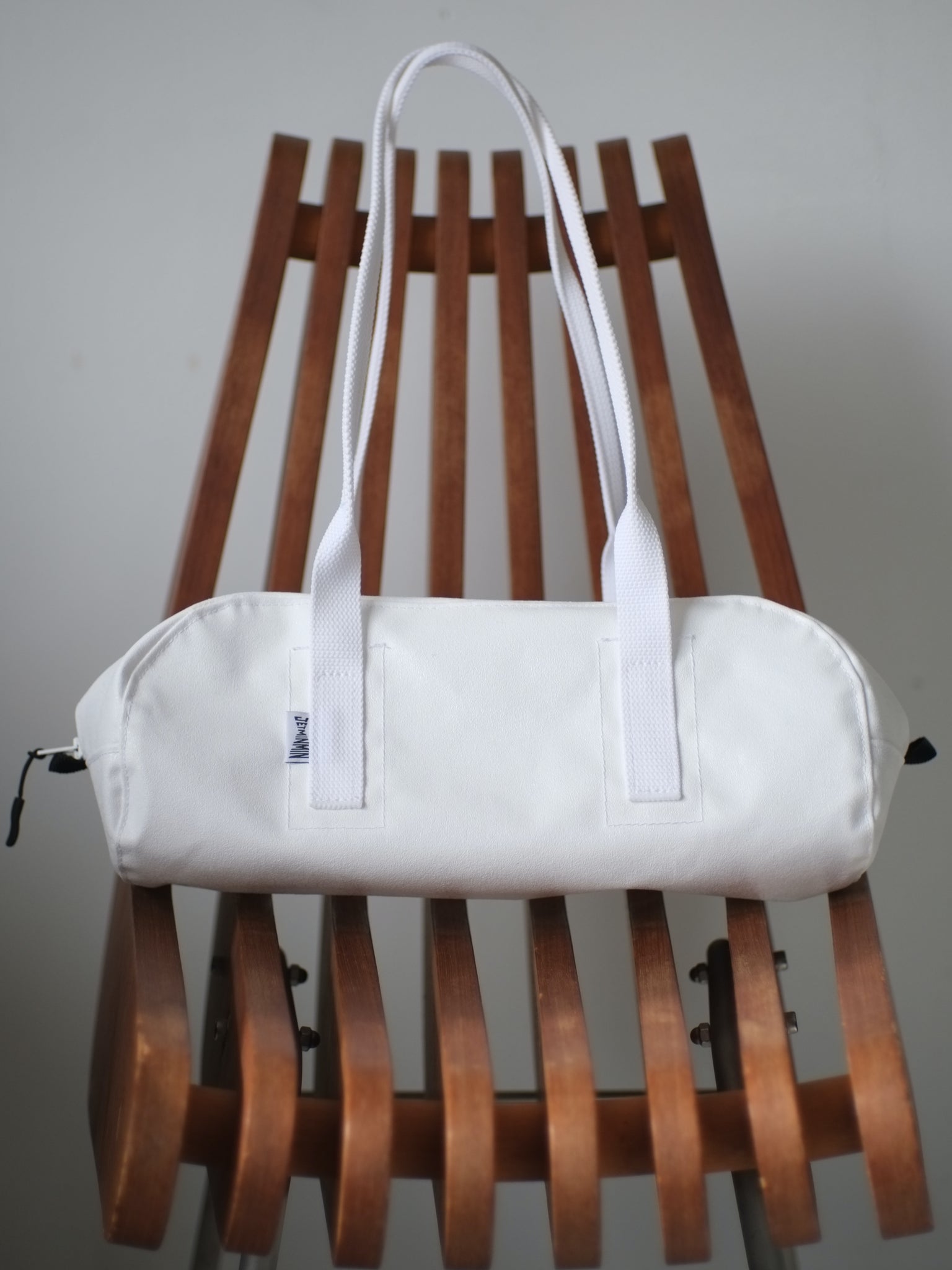 素材:ボディ.防水テント生地(日本製・ポリエステル繊維にPVC[塩化ビニル樹脂]をコーティングした膜材料)、ハンドル.ポリプロピレン(日本製)