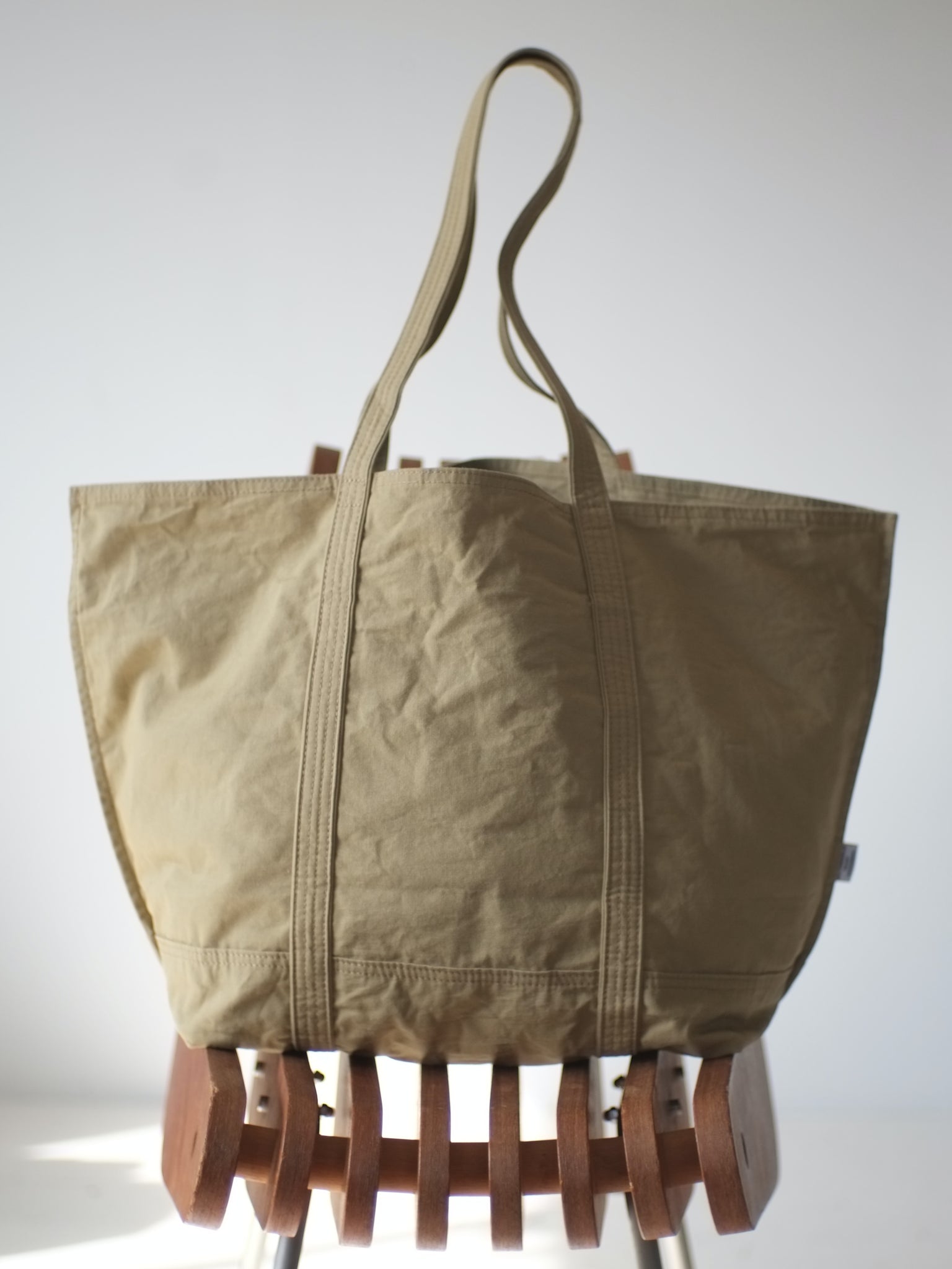 布素材の商品は、生地を一度洗濯して自然に縮ませた上で裁断・縫製をして、完成したものをもう一度洗濯・自然乾燥させて全体に馴染ませたりアタリをつけたりしたものを納品しています。