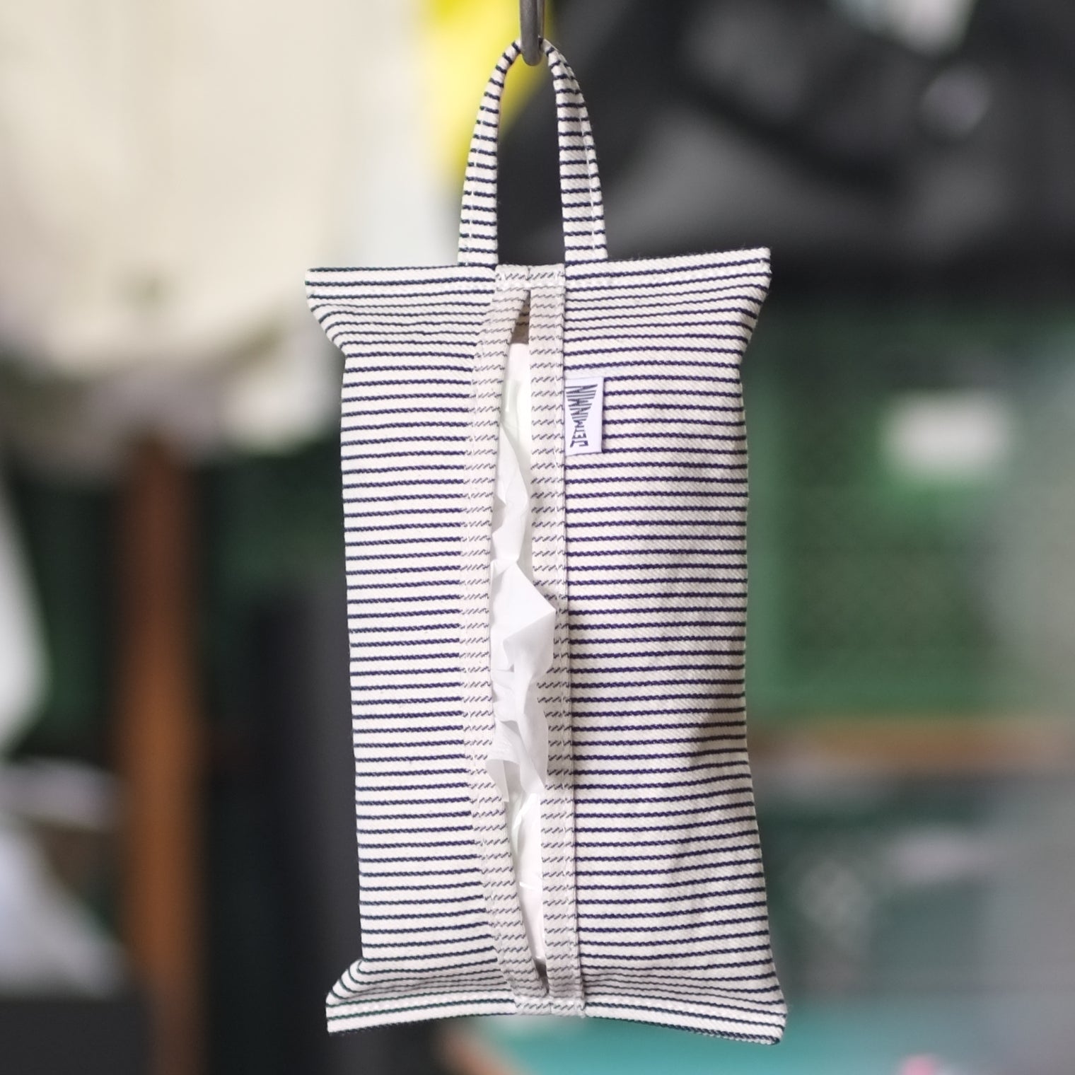 ソフトパックのフルサイズティッシュを入れるカバー。 壁掛け用ループ付き。