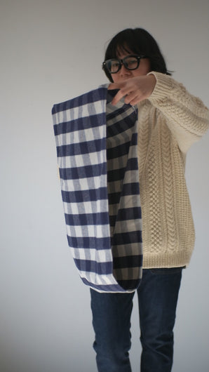 輪っかになったニットのマフラーにインスパイアされて制作した JETMINMINの地元・浜松産コットンネル生地のネックウォーマー。
