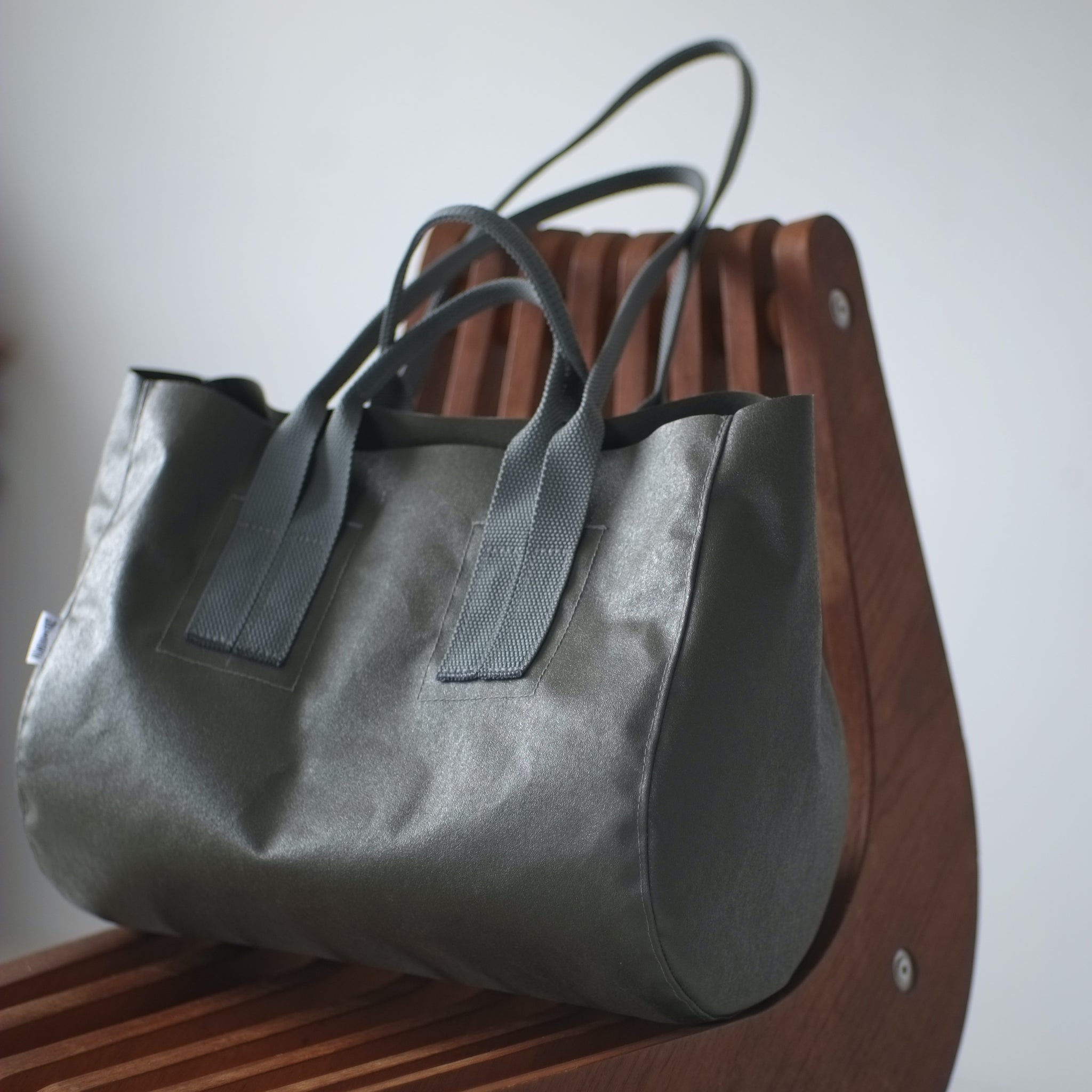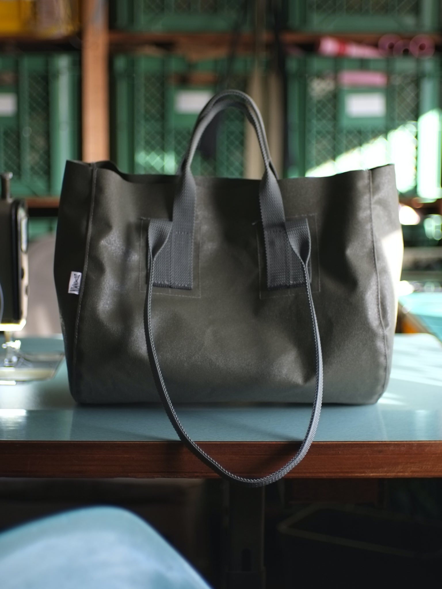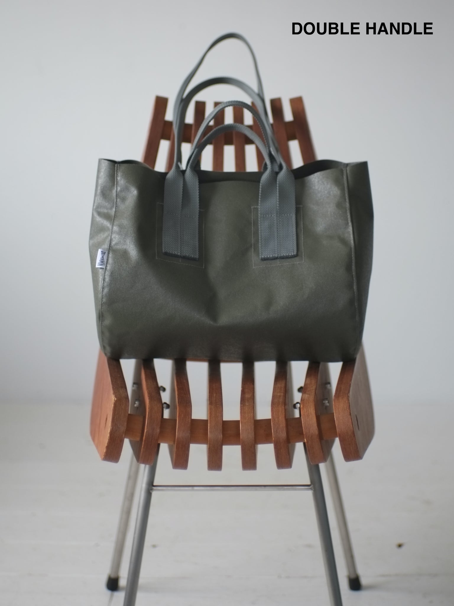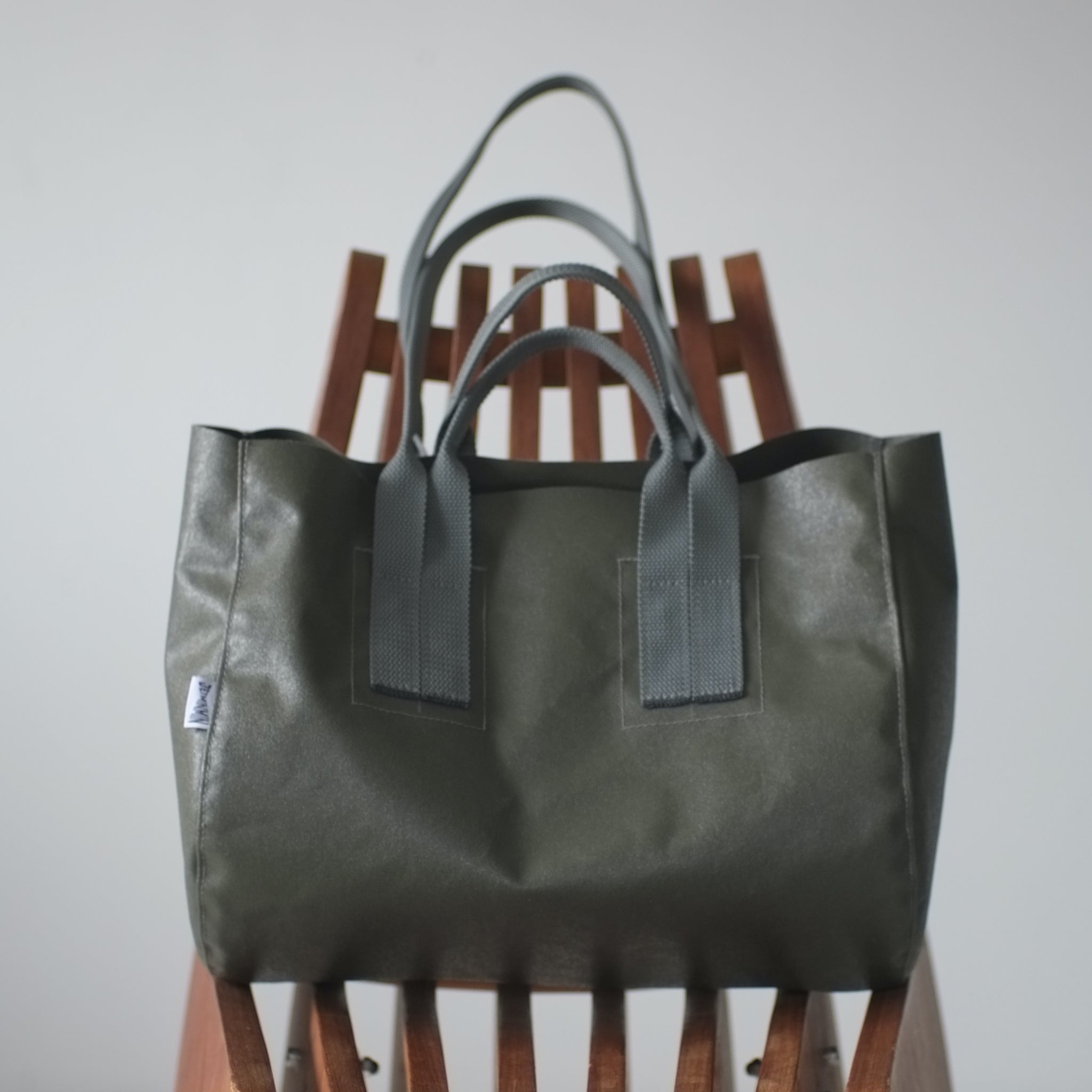 Materials: Body - Waterproof tent fabric (made in Japan, PVC [polyvinyl chloride resin] coated membrane material on polyester fiber), Handles - Polypropylene (made in Japan)