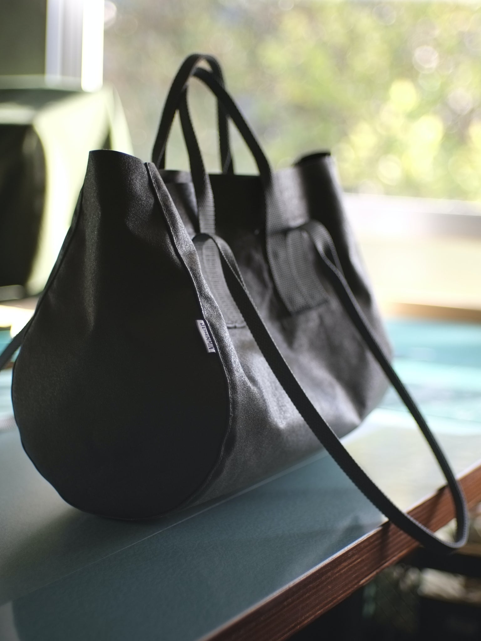 For hard-working women, we created "Kate," a vinyl tote with a feminine silhouette but also a size that can handle serious work. It easily fits A4 files and laptops, and its expanded bottom design makes it easy to store scarves, lap blankets, and cardigans. The width of the tote is almost the same as shoulder width, so it's not bulky on trains—a women's best friend tote.