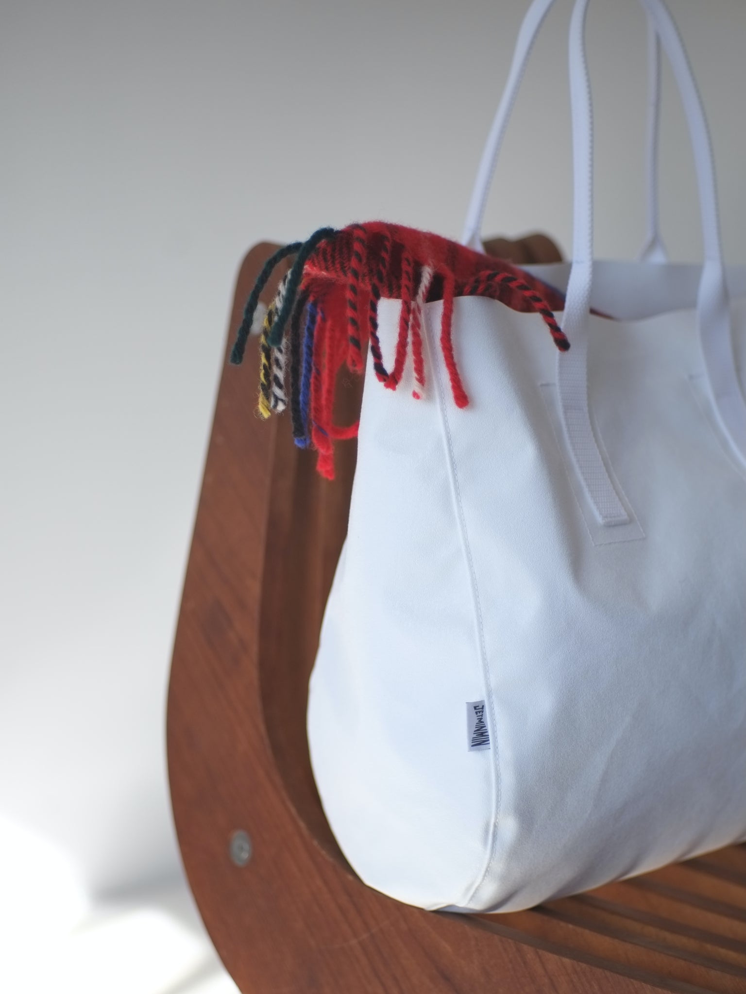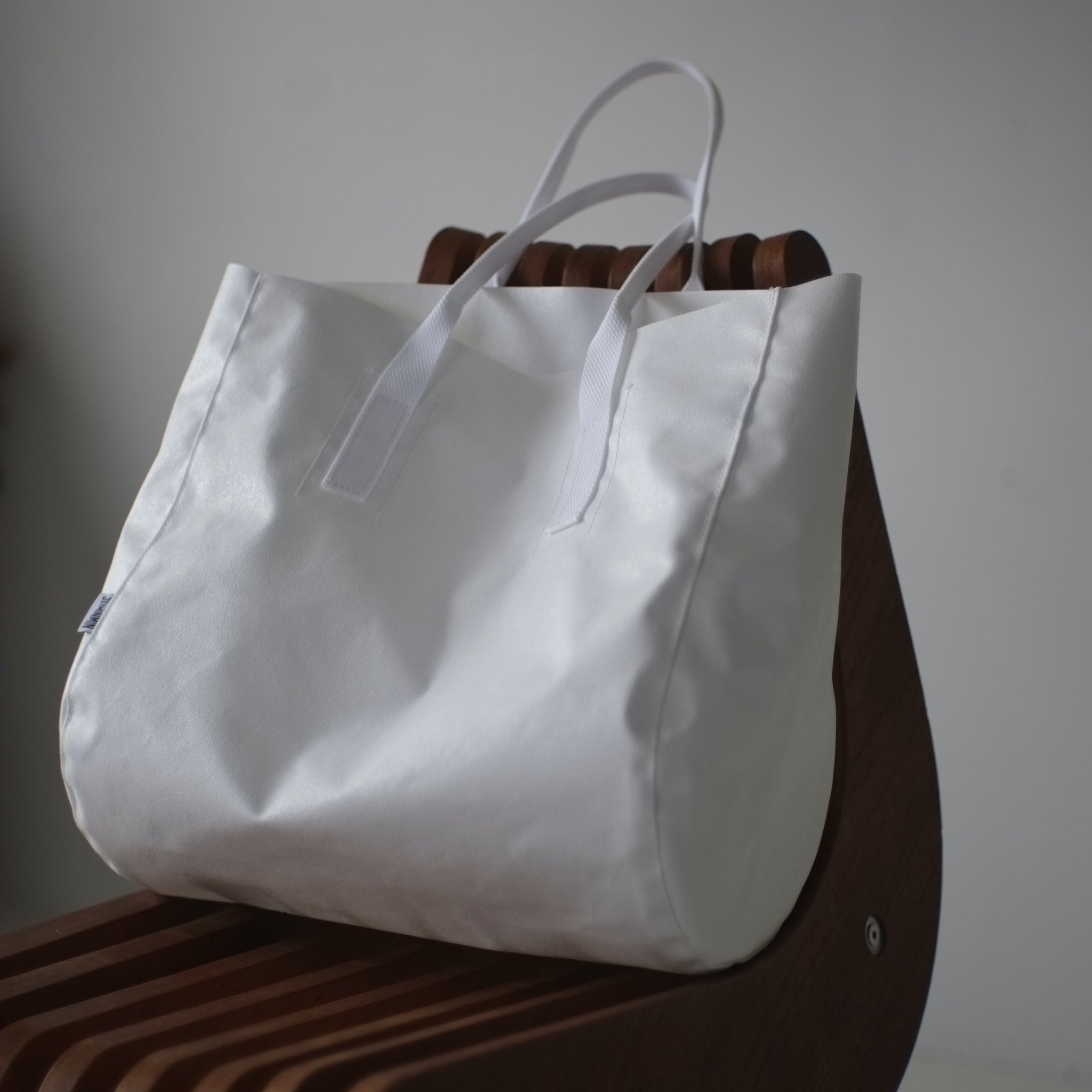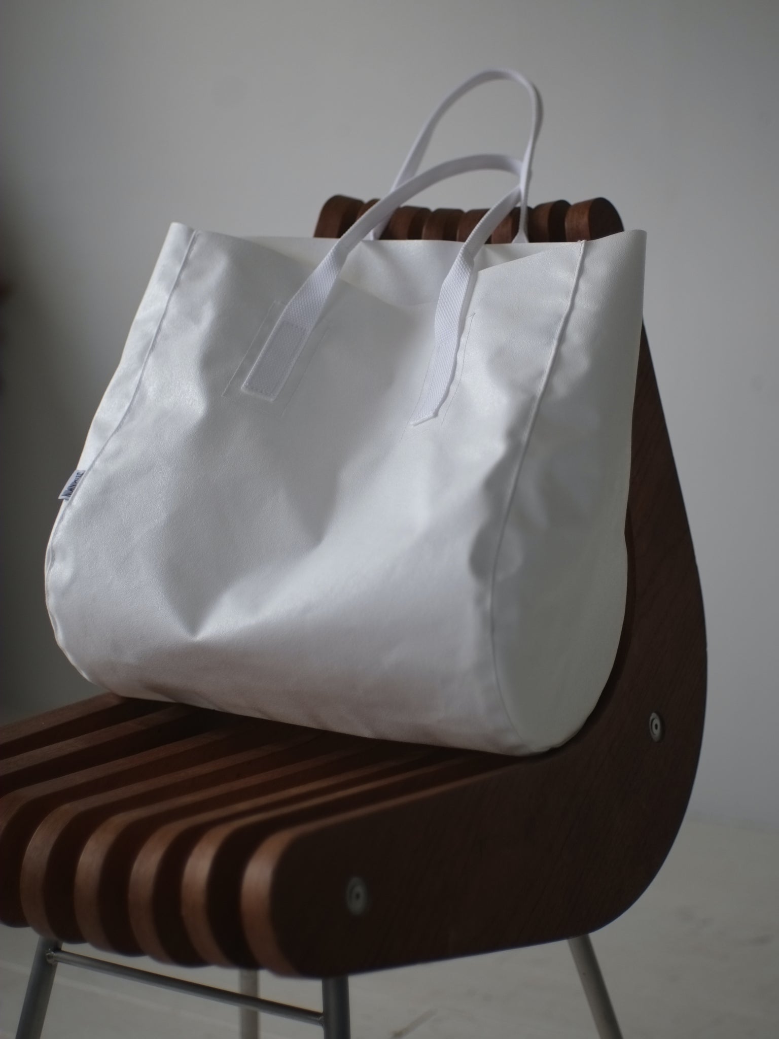 Materials: Body. Waterproof tent fabric (made in Japan, PVC [polyvinyl chloride] coated polyester fiber membrane material), Handles. Polypropylene (made in Japan)