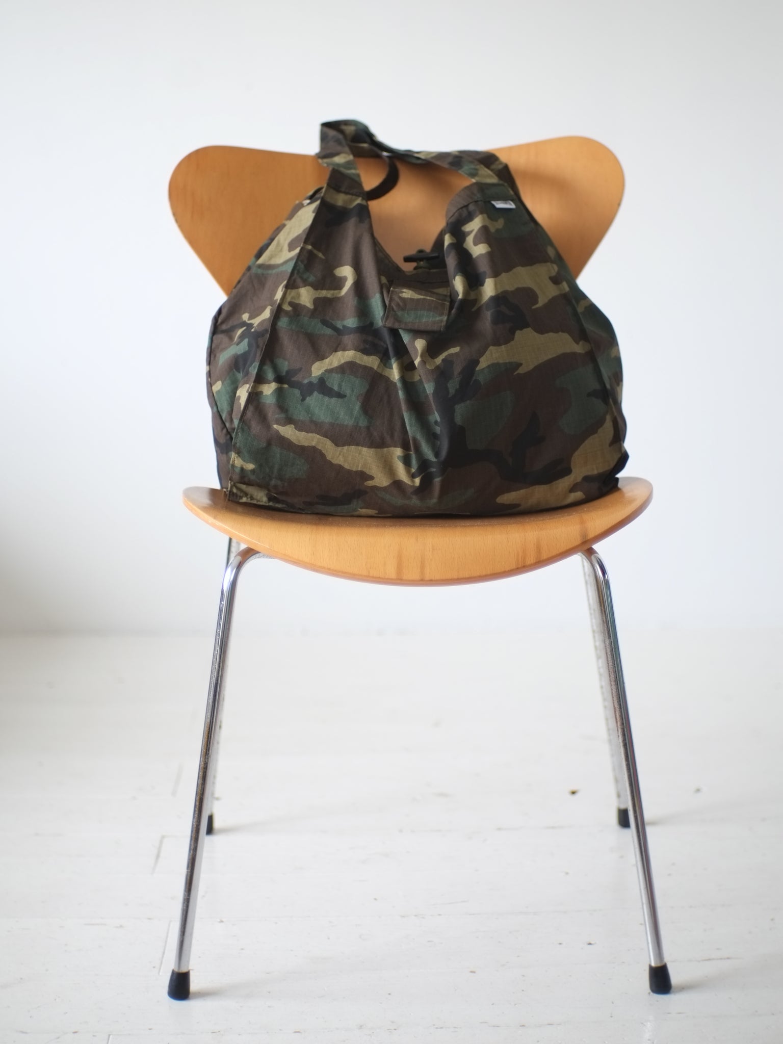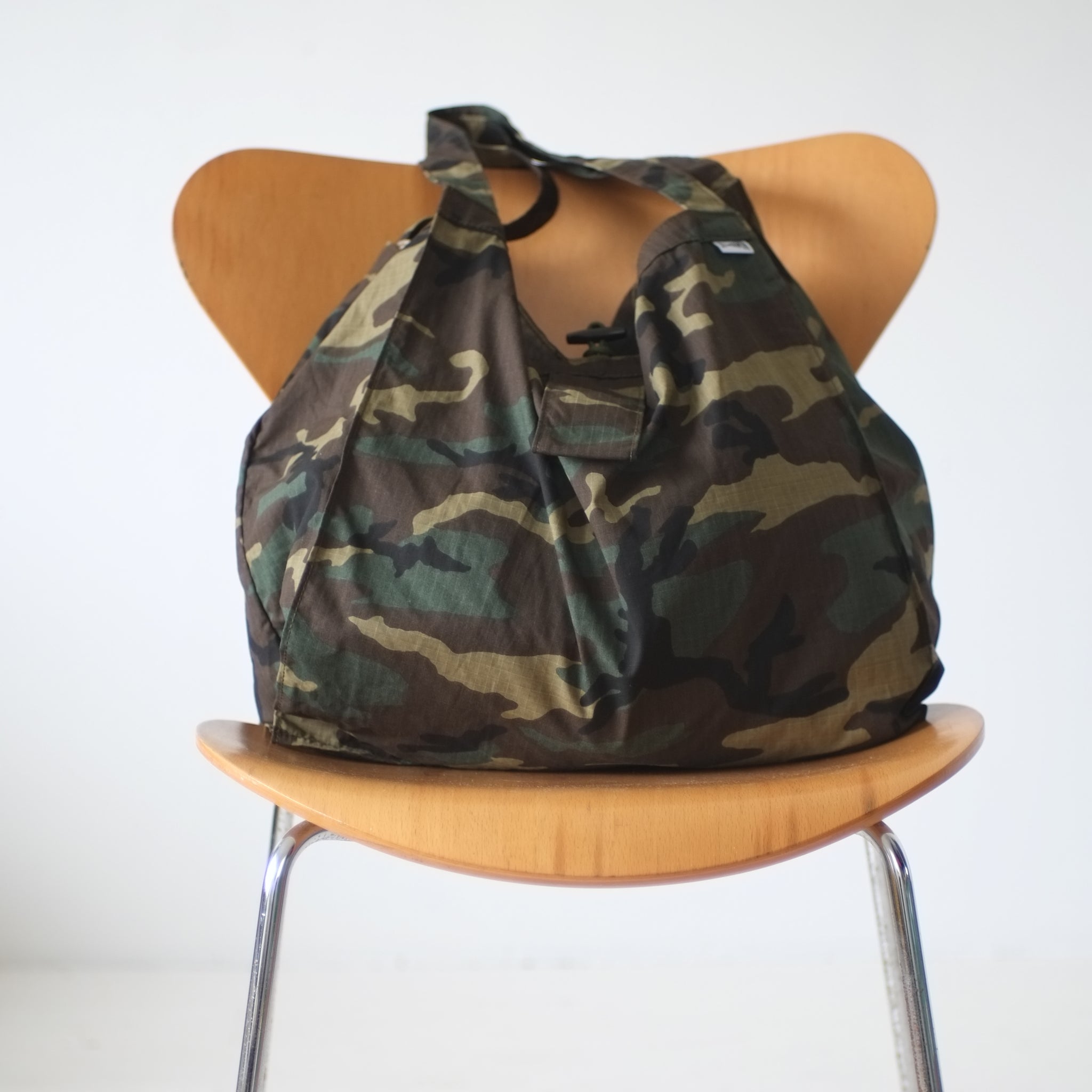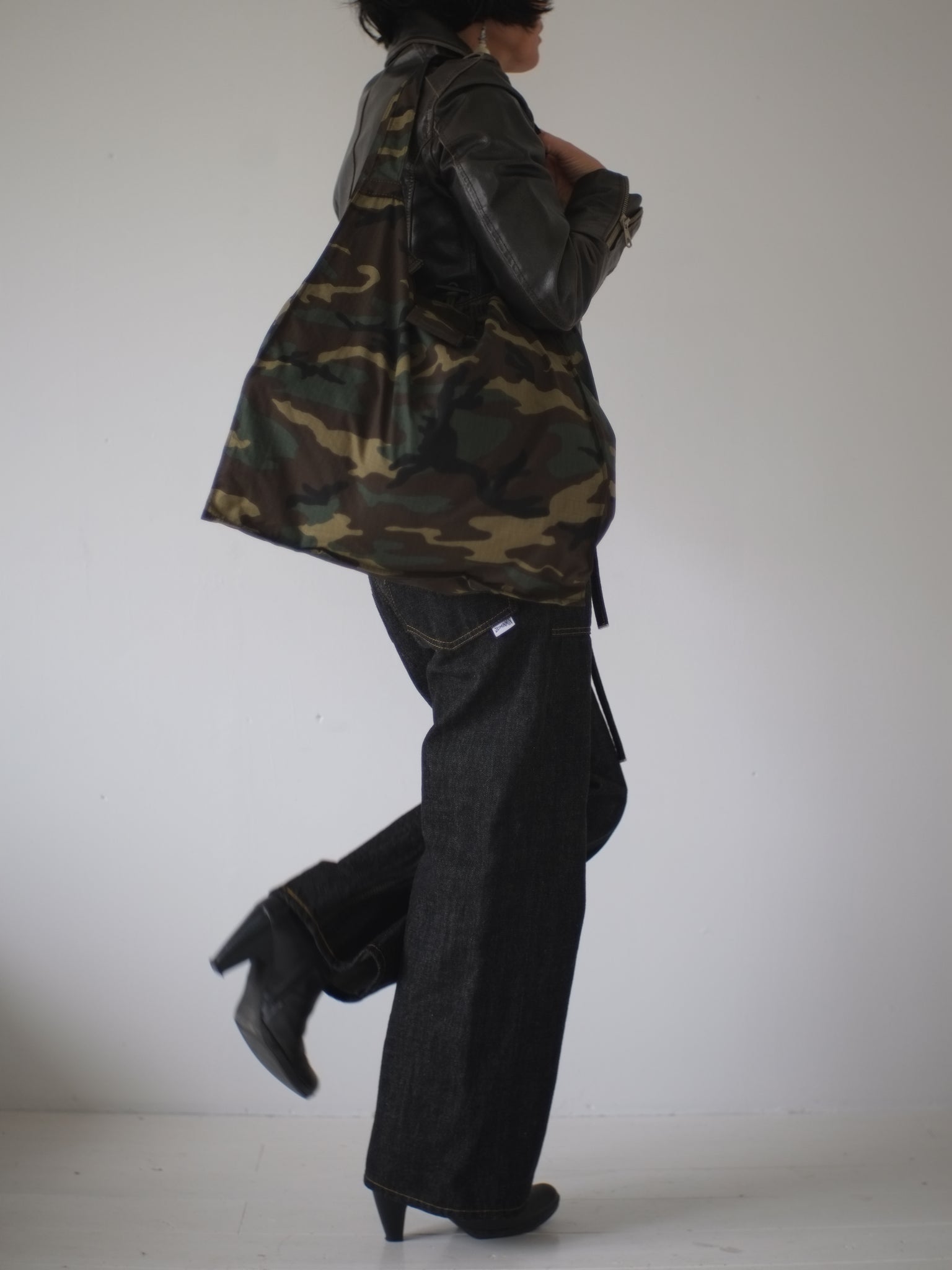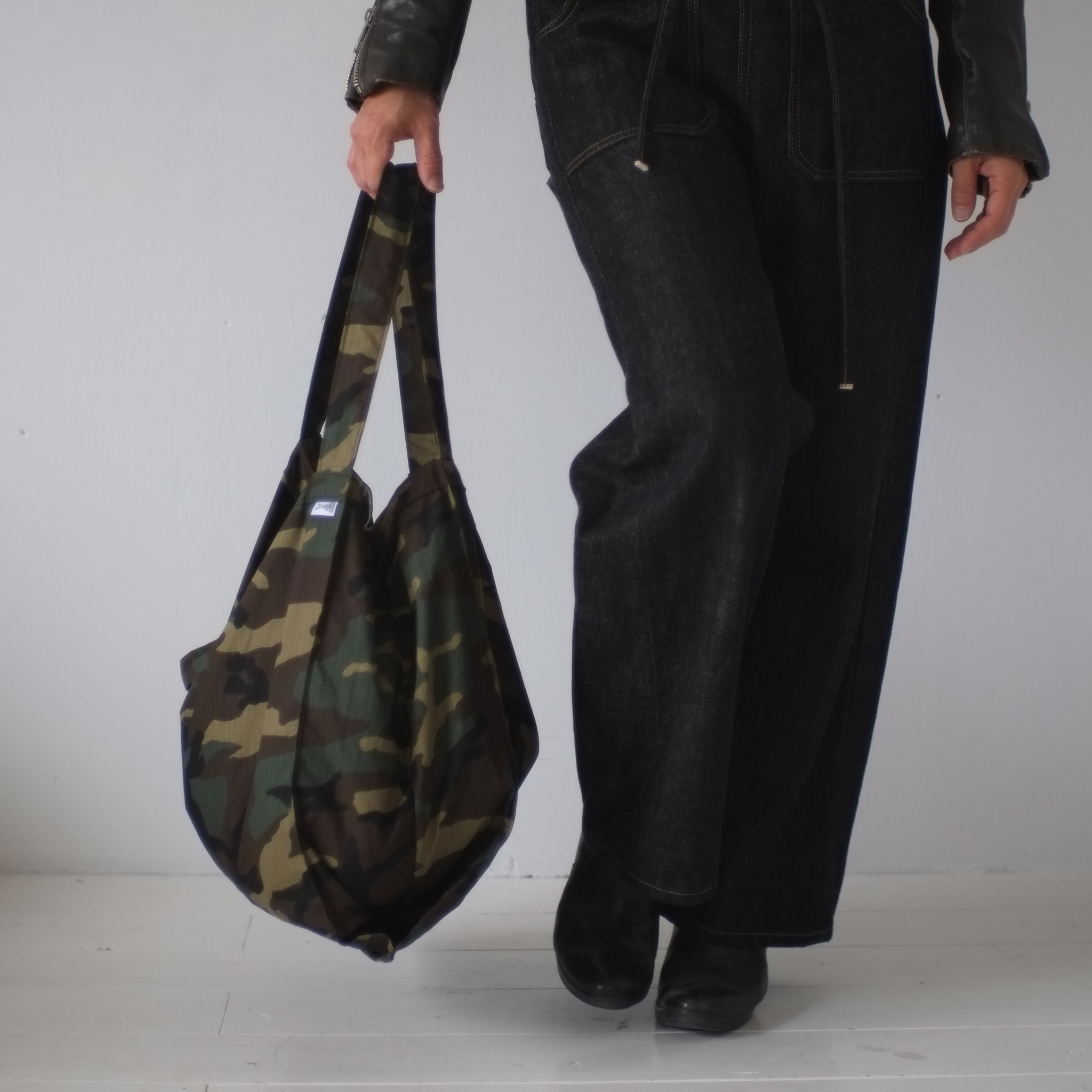 The body is made of Japanese nylon cotton and features a British military nylon strap. *The British military straps used for the handles are military surplus, so the condition, color, and print may vary depending on the item, and they may also have stains or scratches.
