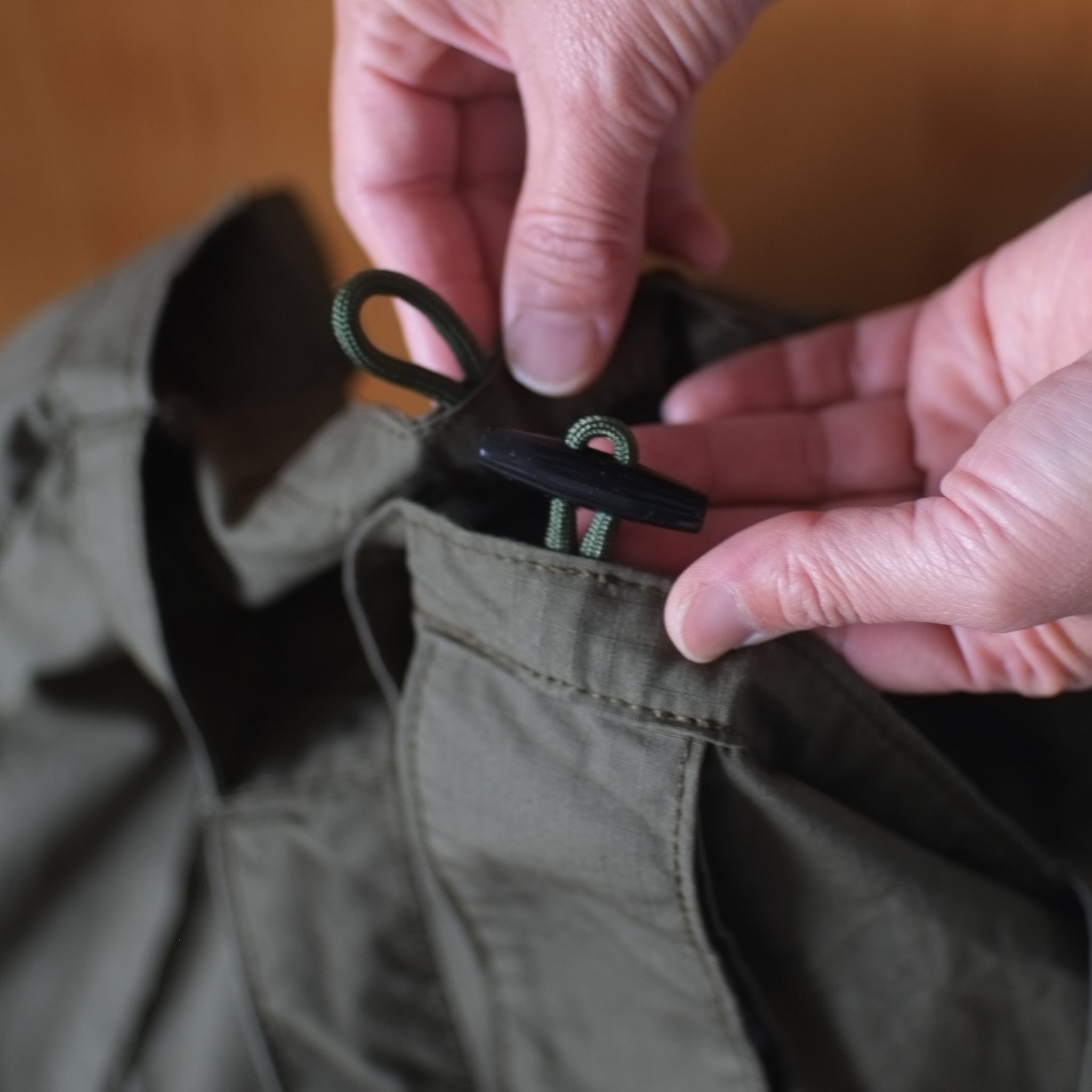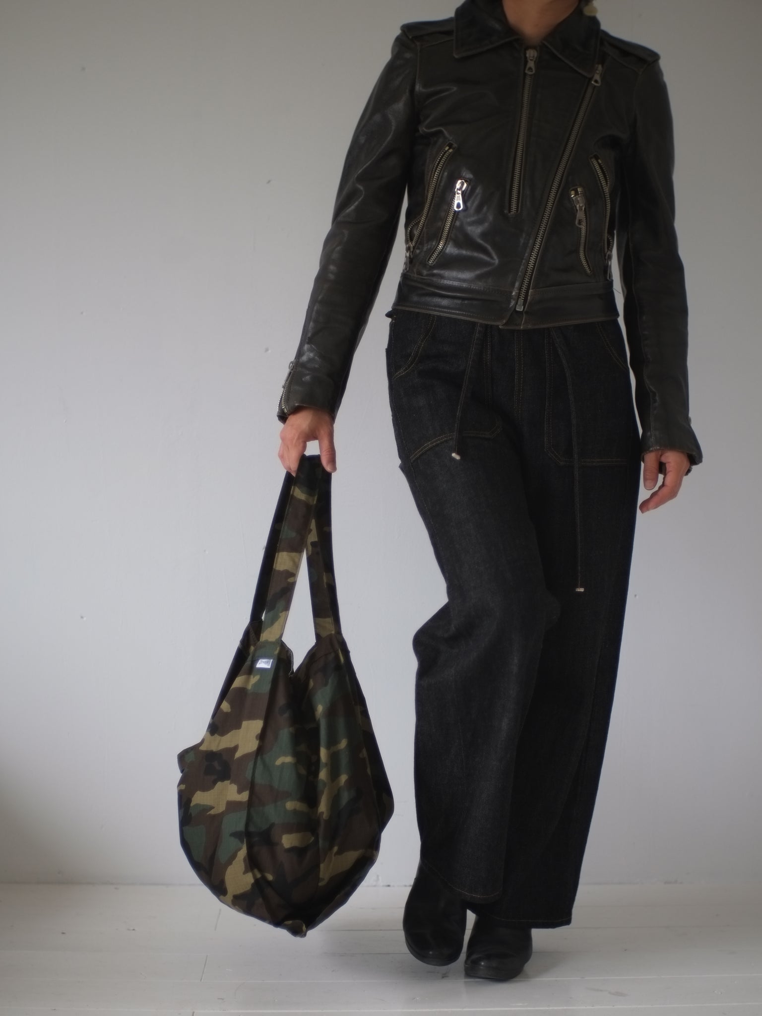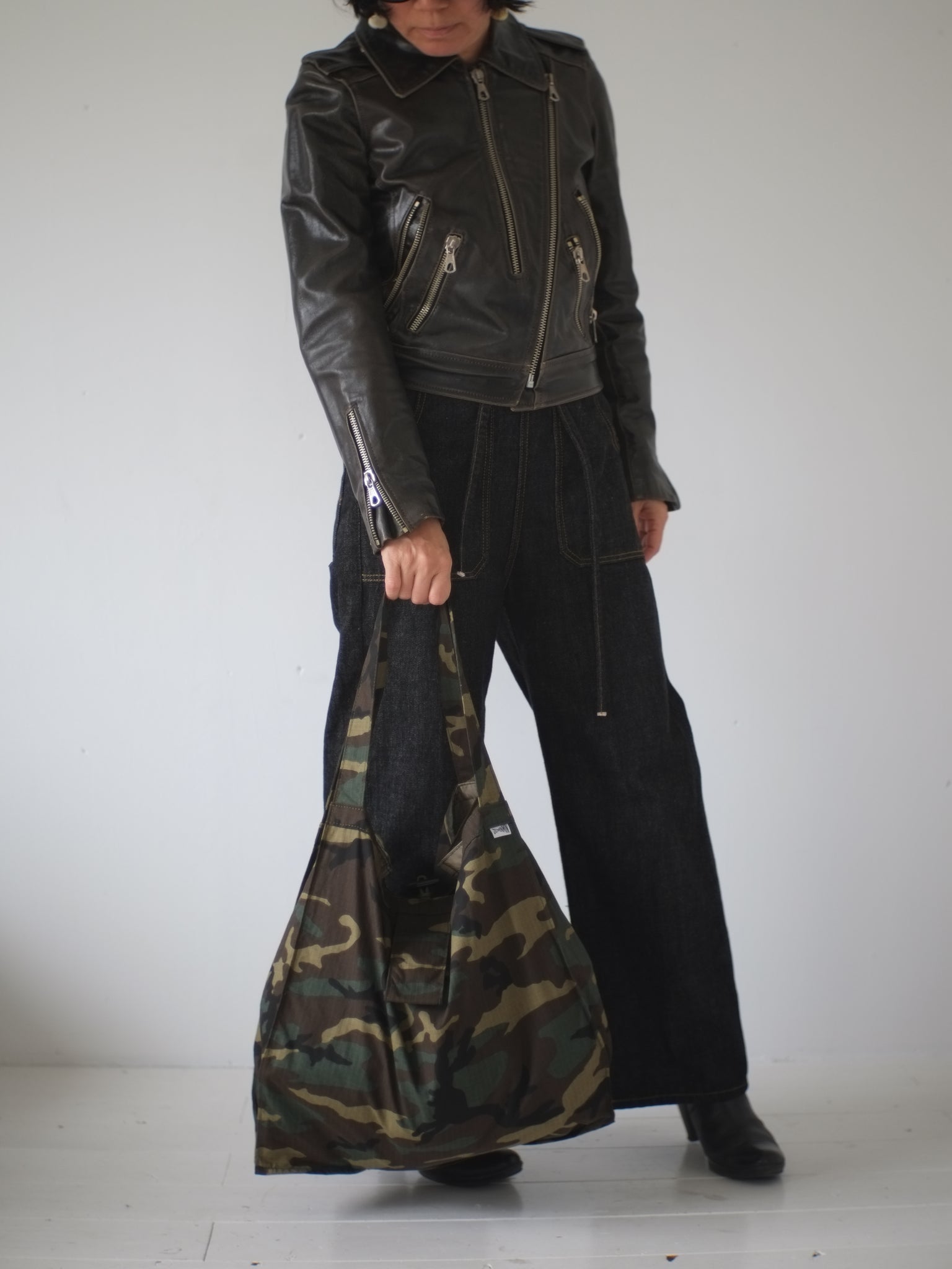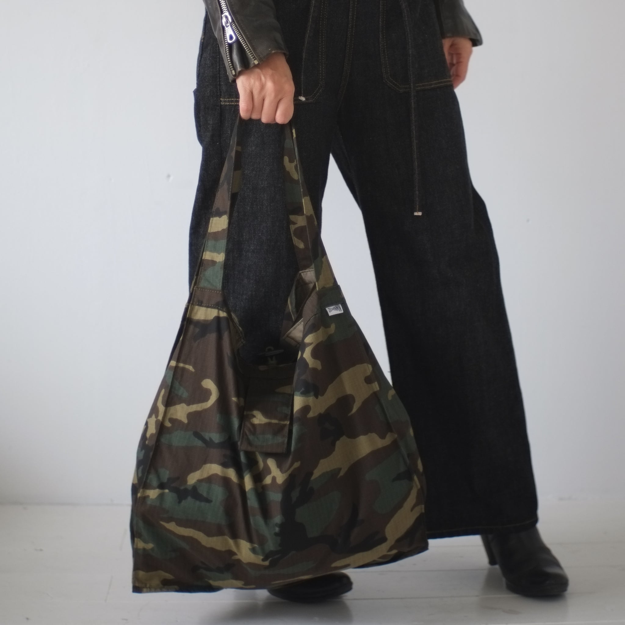 The body is made of Japanese nylon cotton and features a British military nylon strap. *The British military straps used for the handles are military surplus, so the condition, color, and print may vary depending on the item, and they may also have stains or scratches.