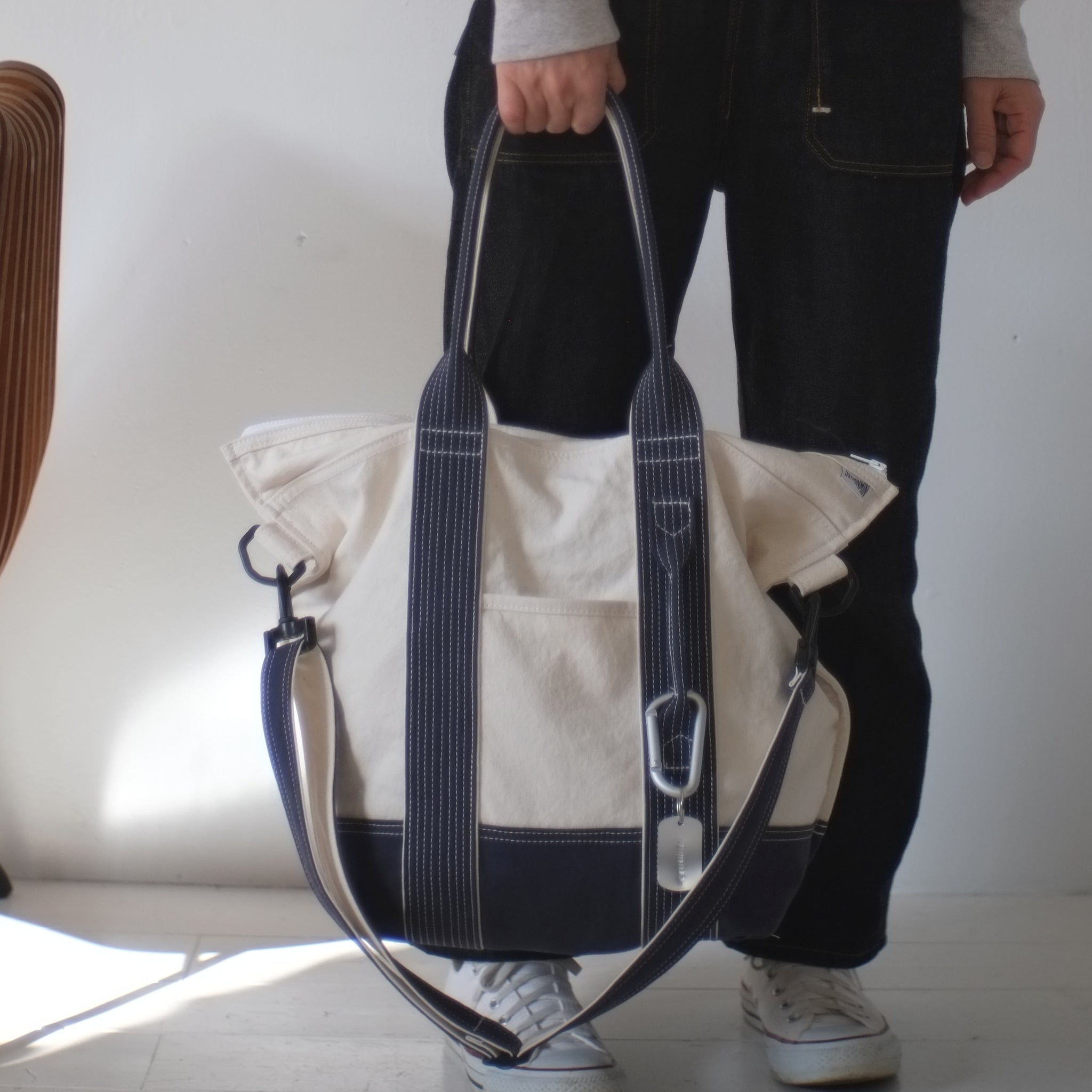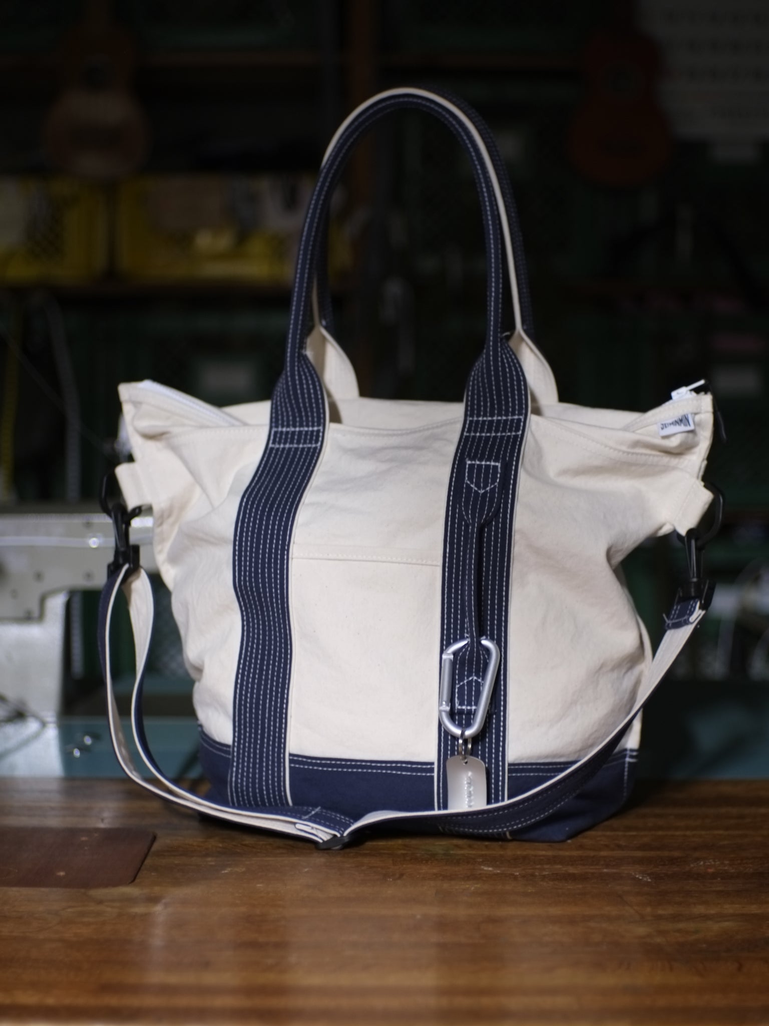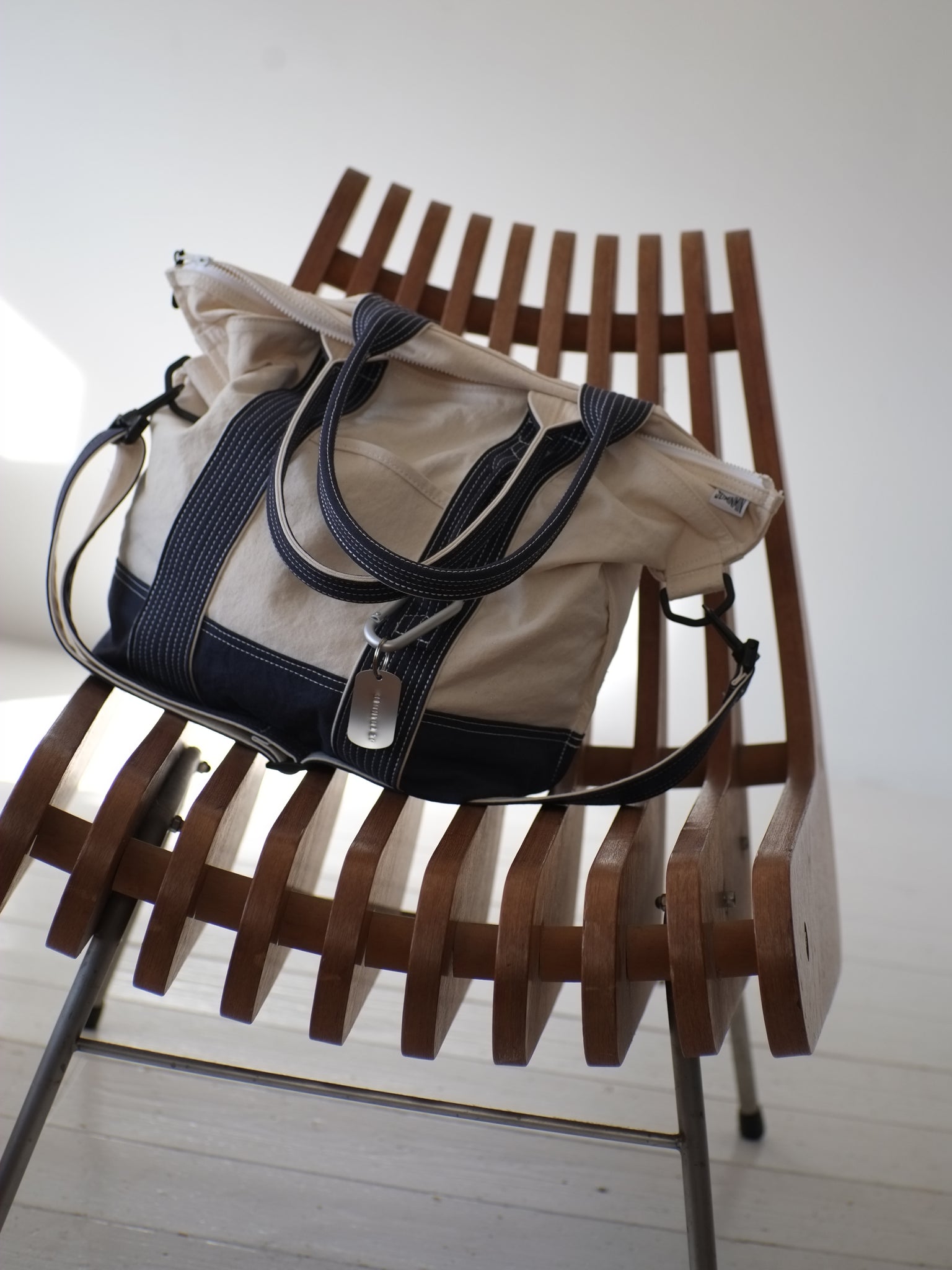 A4タテ型マチ広めトート"BALLOOON!-45-HI"に、ジッパーと斜め掛けストラップの付いた "ZIP-BALLOOON!-45-HI+STRAP" が完成しました。