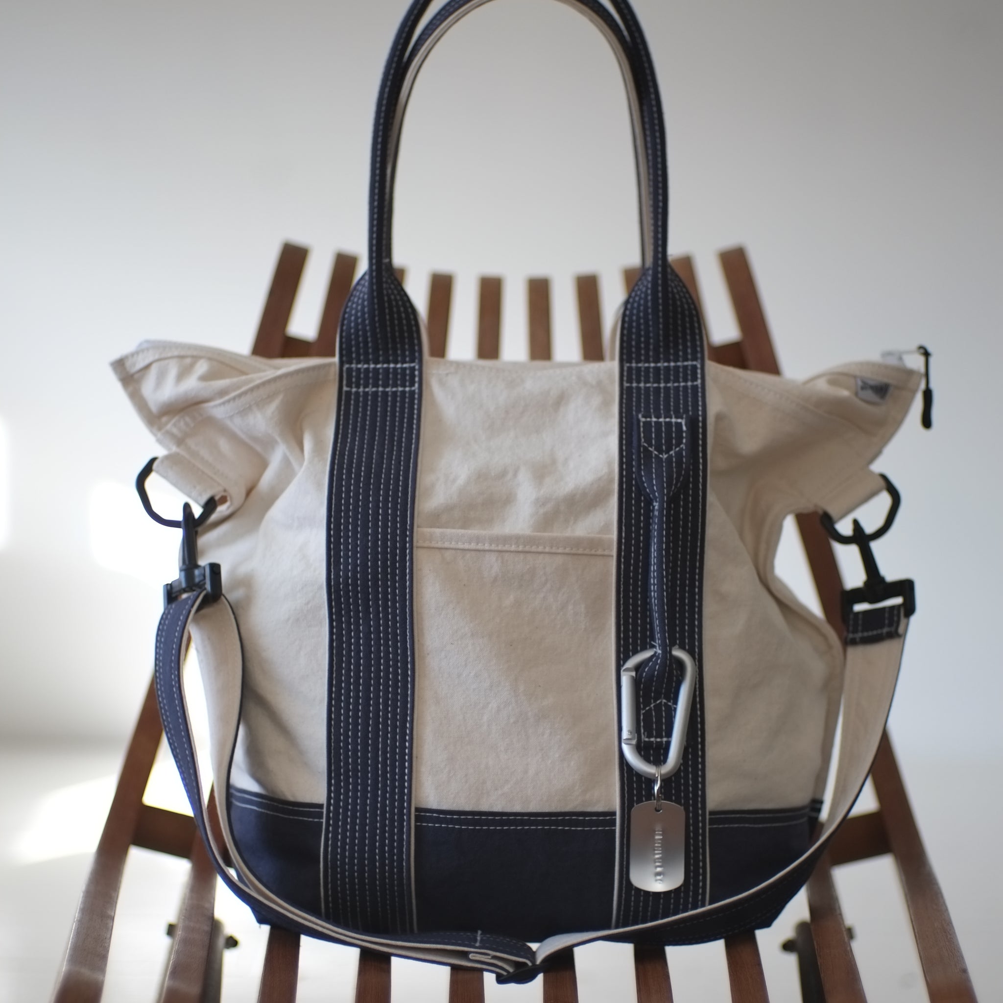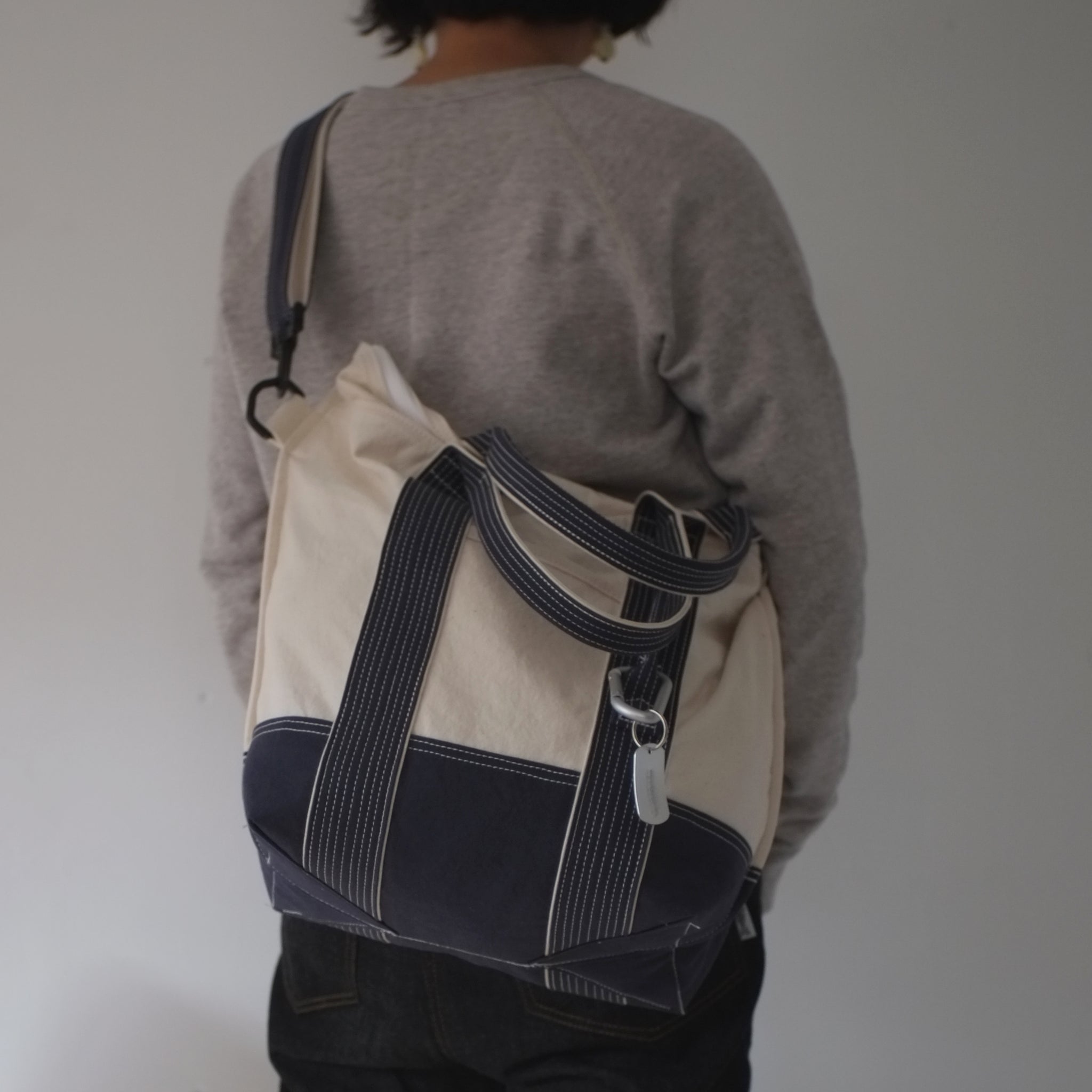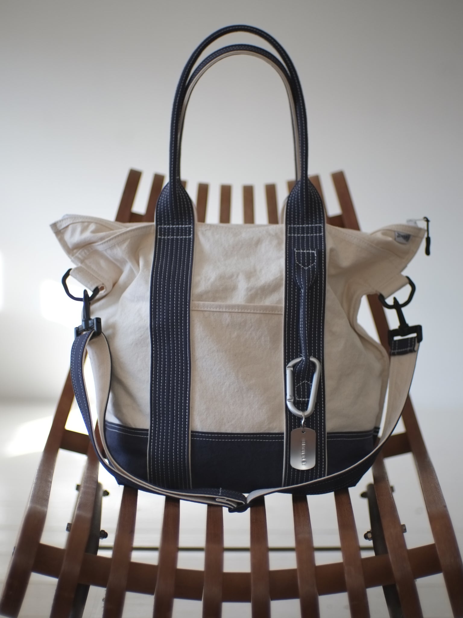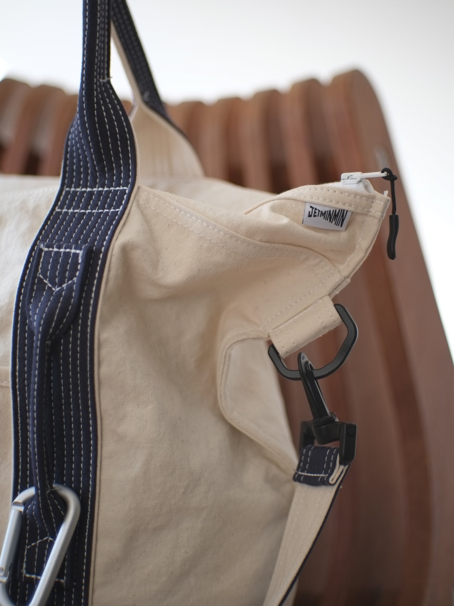 A4タテ型マチ広めトート"BALLOOON!-45-HI"に、ジッパーと斜め掛けストラップの付いた "ZIP-BALLOOON!-45-HI+STRAP" が完成しました。